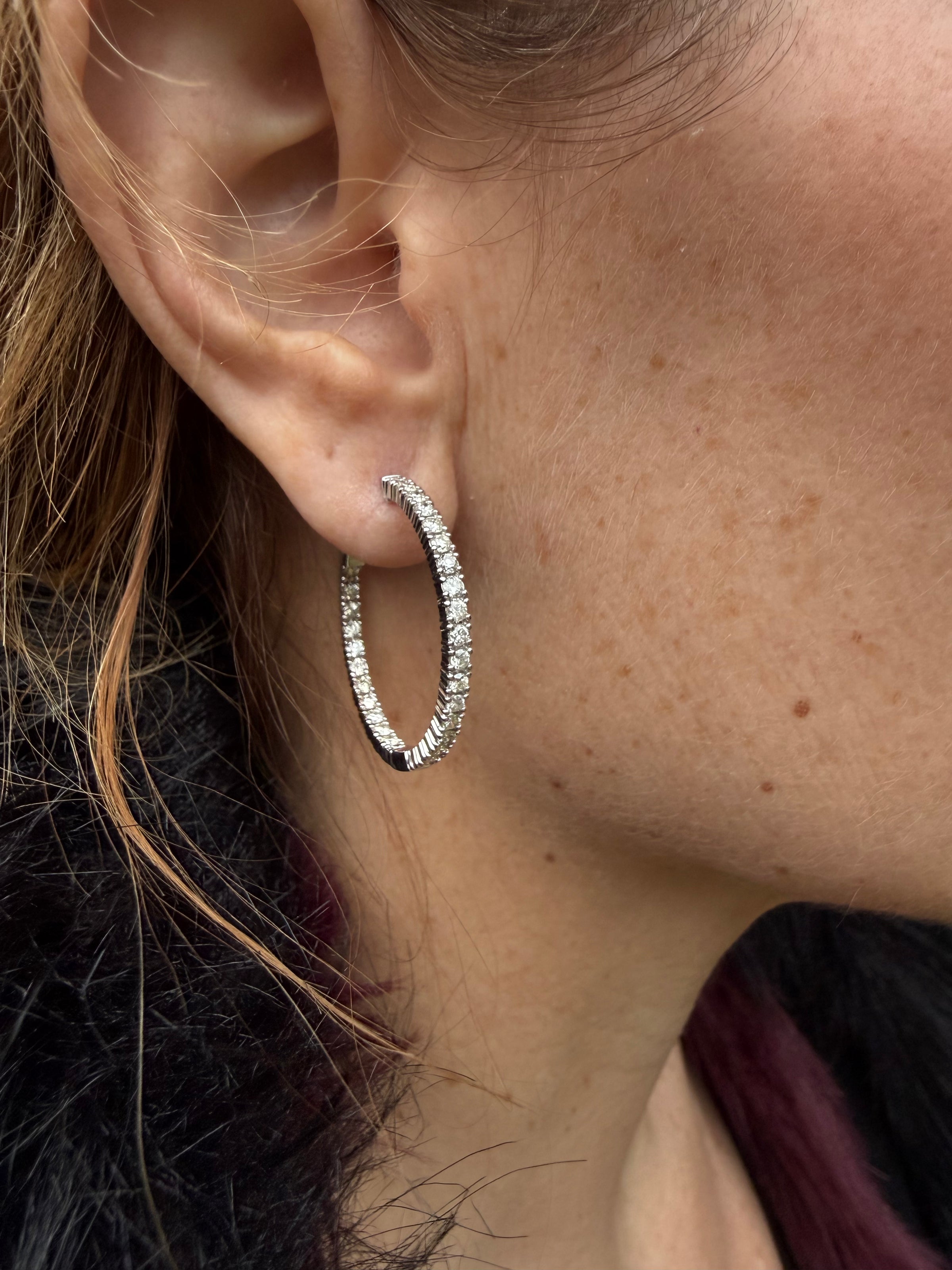 Diamonds from every angle, these inside-out diamond hoop earrings are designed to sparkle no matter how they move. Set with diamonds along both the inside and outside of each hoop, they create continuous brilliance while maintaining a timeless, elegant silhouette.